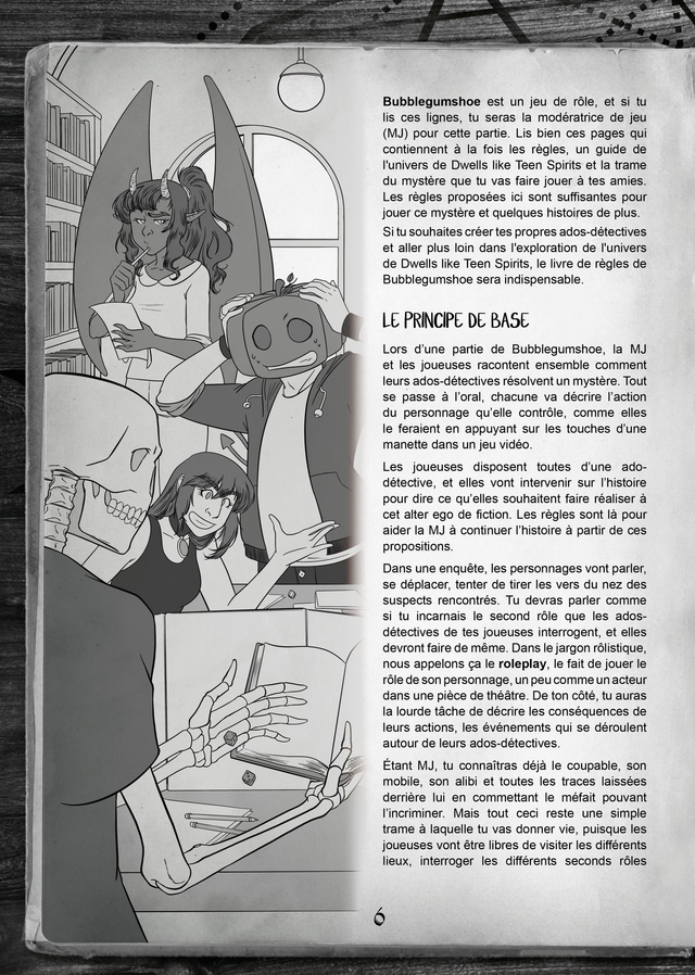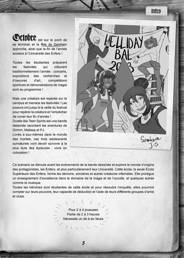 Découvrez le premier jeu de rôle sur l'univers de Dwells like Teen Spirits, publié par les Portes de l'Imaginaire sur le système Bubblegumshoe. Comprends les bases du système de règles, quatre variantes de scénario et le lore complet de la Satan Superior Académy, l'école de magie des Enfers !